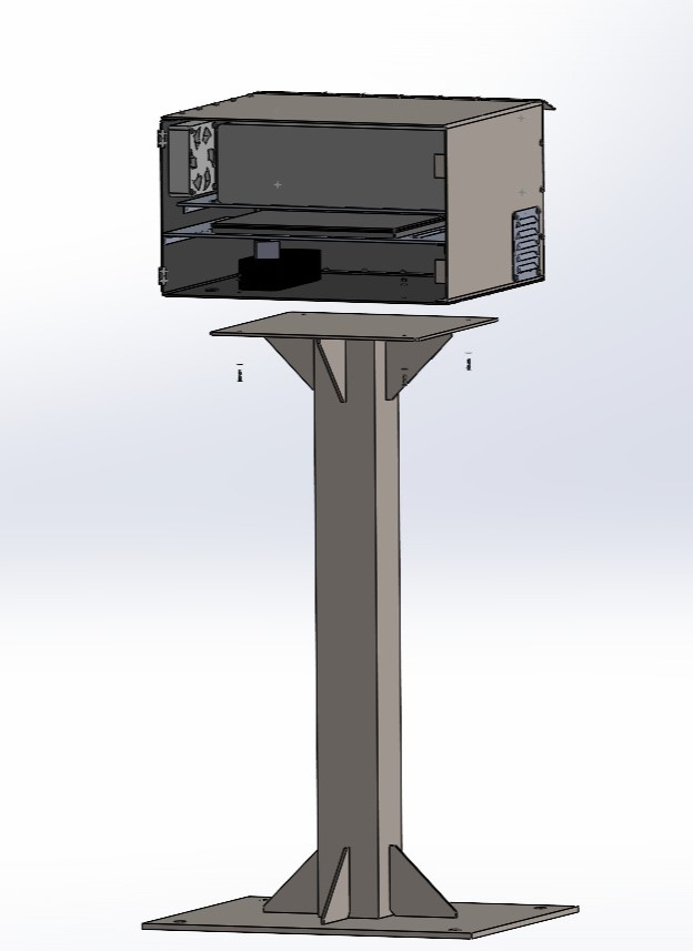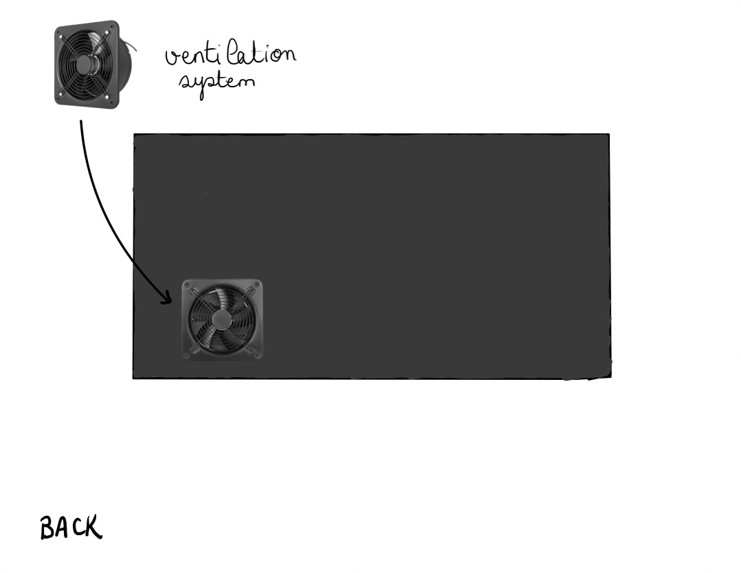 The casing prototype either needs improvement or is a very low version of the original box casing. The vantilators work, the monitors work, and the casing is a closed system. But it uses low-grade, non-sustainable materials and has no level planks for the monitor and computer. And it is not built for strong weather conditions. There is a lot of room for improvement. But the general casing concept works: if it is too hot, the ventilators go on, the box has a door that can open and close, and the monitor is able to shine on the walls.